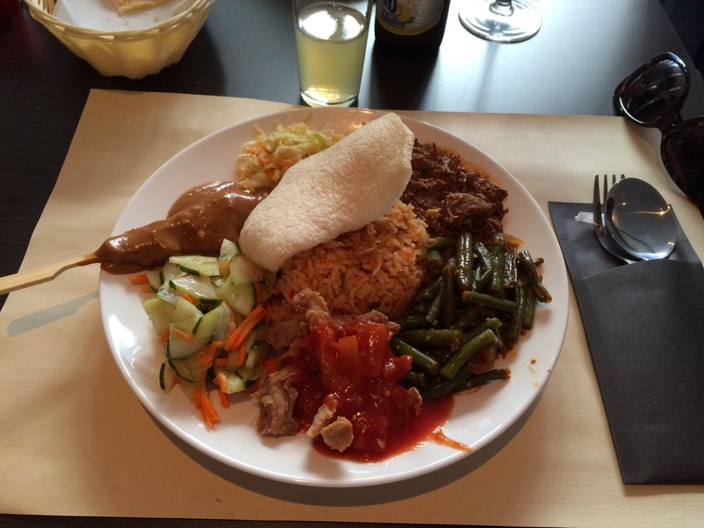 ► Rendang rundvlees, gulai kip met kokosmelk en vis in gele bumbu