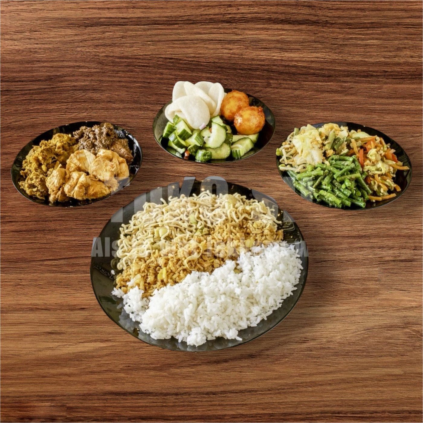 ► Rijsttafel sederhana dengan ayam opor, tempe mendoan, dan sayur urap